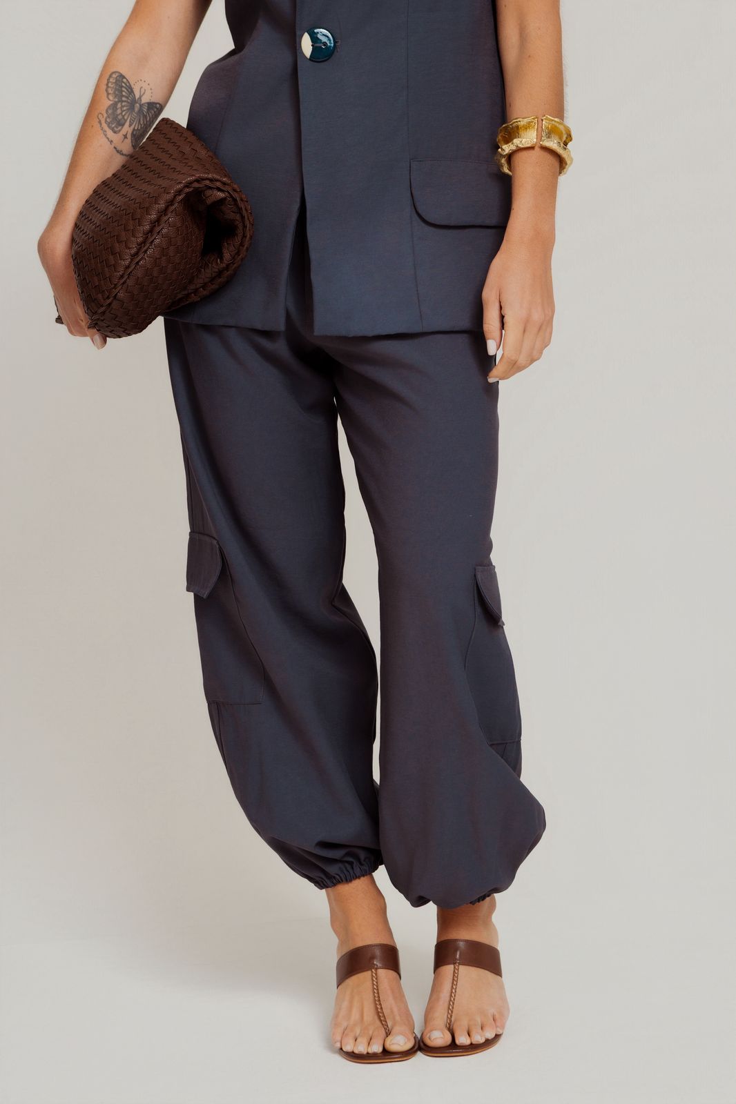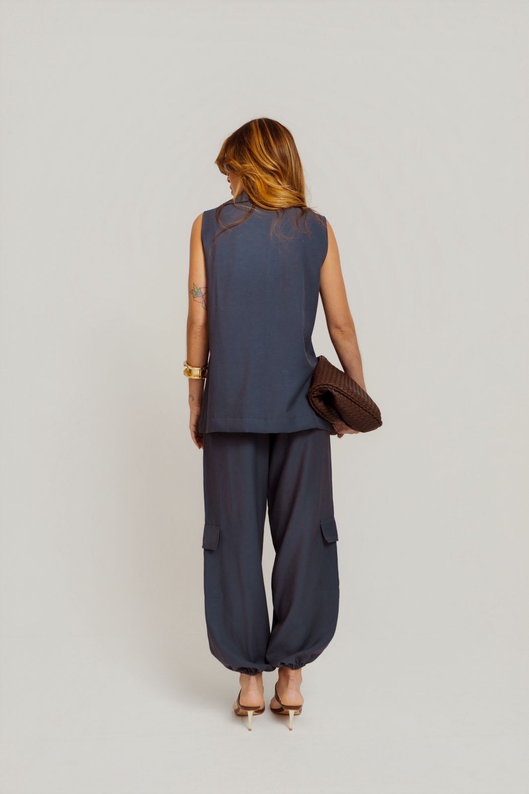 Top Conjunto Cargo Marrom/Petróleo