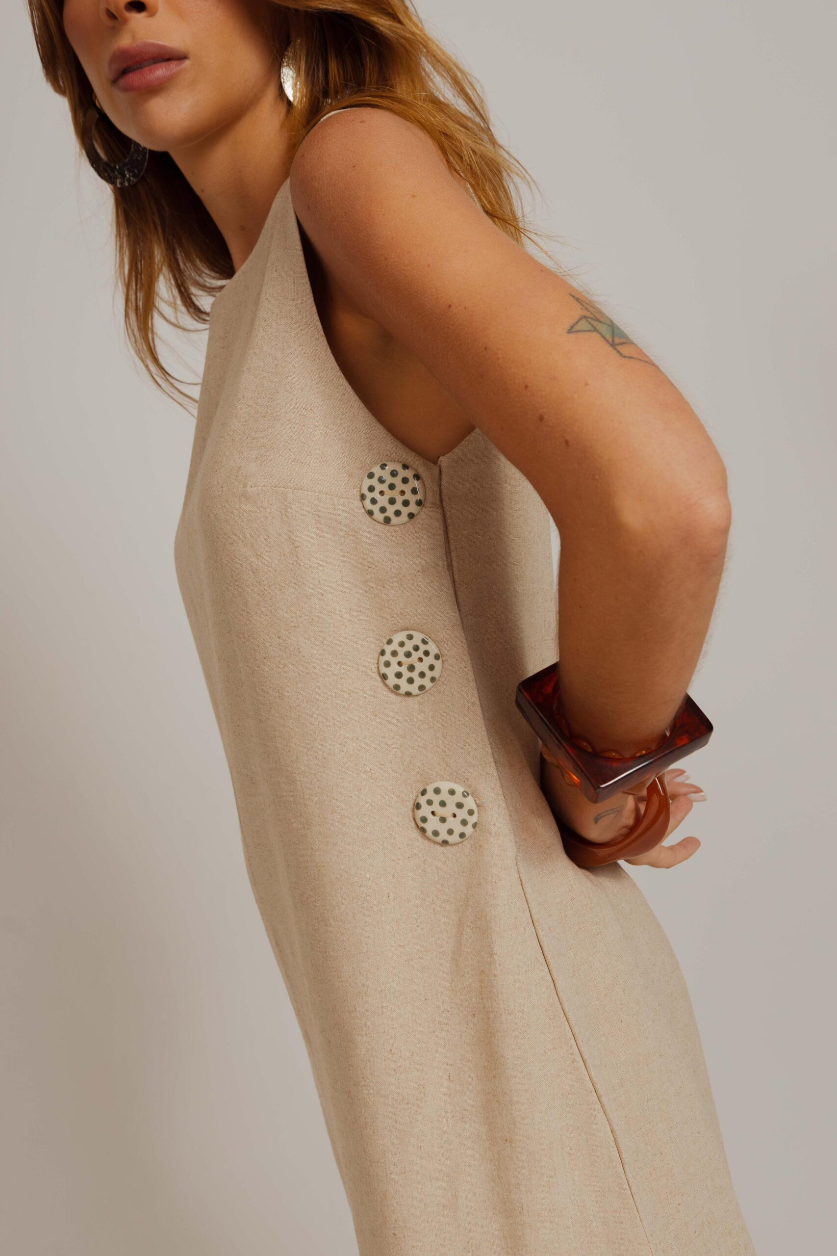 Vestido Botões Cerâmica Midi Off White